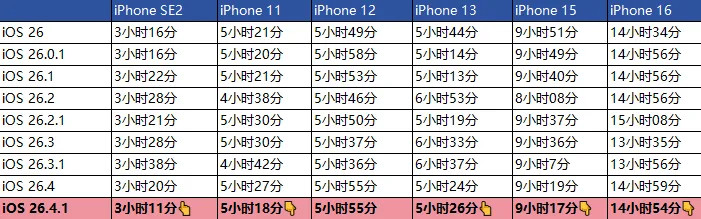尤其是相对上版系统,iOS 26.4.1 是否带来了续航上的优化。