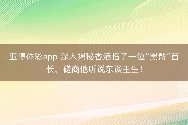 亚博体彩app 深入揭秘香港临了一位“黑帮”首长,磋商他听说东谈主生!