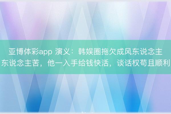 亚博体彩app 演义:韩娱圈拖欠成风东说念主东说念主苦,他一入手给钱快活,谈话权苟且顺利