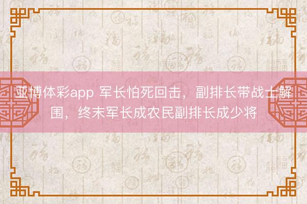 亚博体彩app 军长怕死回击,副排长带战士解围,终末军长成农民副排长成少将