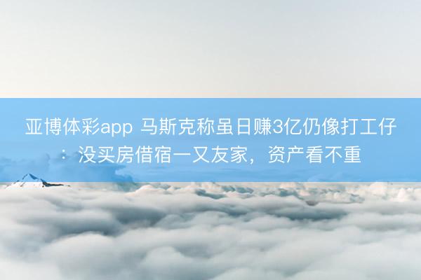 亚博体彩app 马斯克称虽日赚3亿仍像打工仔:没买房借宿一又友家,资产看不重