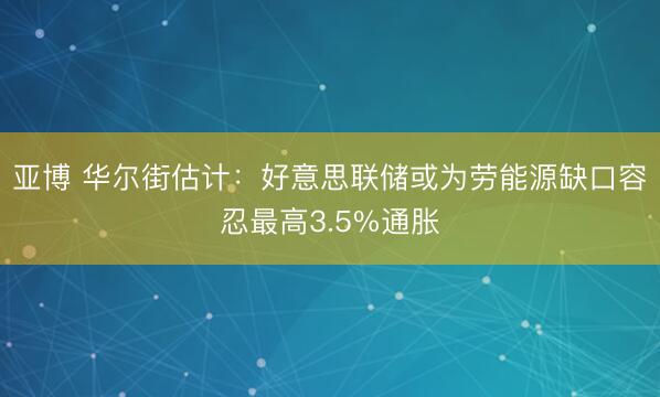 亚博 华尔街估计:好意思联储或为劳能源缺口容忍最高3.5%通胀