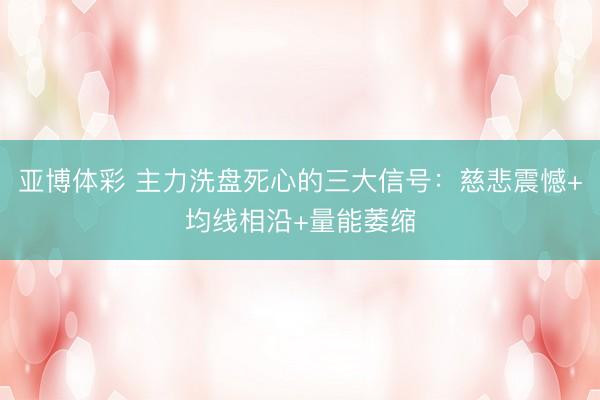 亚博体彩 主力洗盘死心的三大信号:慈悲震憾+均线相沿+量能萎缩