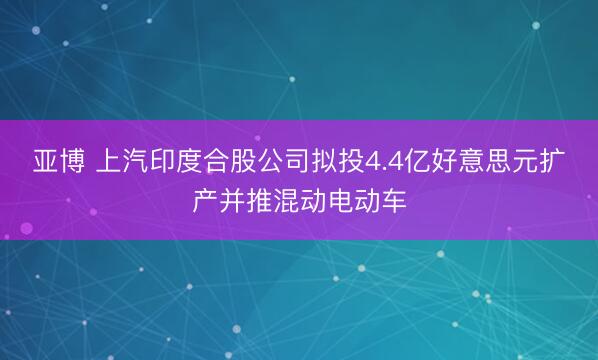 亚博 上汽印度合股公司拟投4.4亿好意思元扩产并推混动电动车