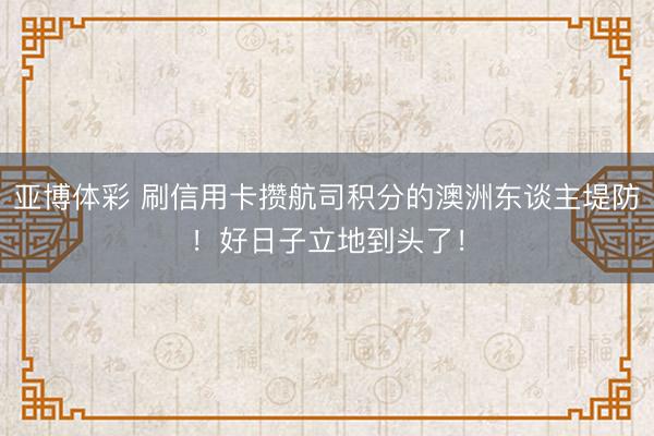 亚博体彩 刷信用卡攒航司积分的澳洲东谈主堤防!好日子立地到头了!