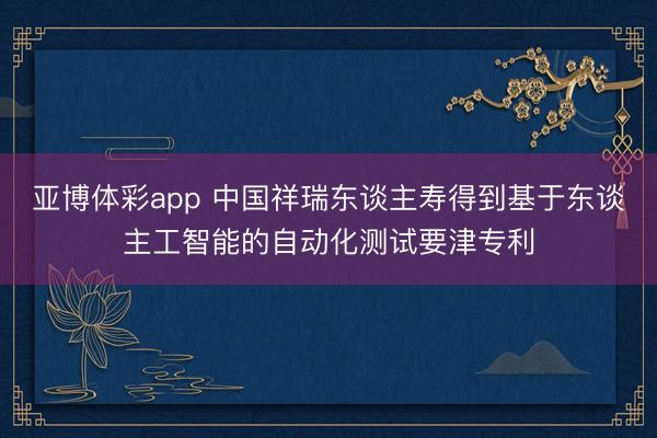 亚博体彩app 中国祥瑞东谈主寿得到基于东谈主工智能的自动化测试要津专利