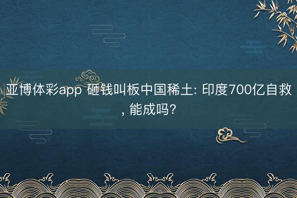 亚博体彩app 砸钱叫板中国稀土: 印度700亿自救, 能成吗?
