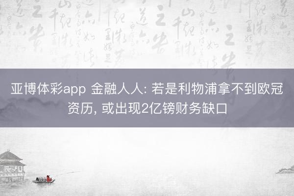 亚博体彩app 金融人人: 若是利物浦拿不到欧冠资历, 或出现2亿镑财务缺口