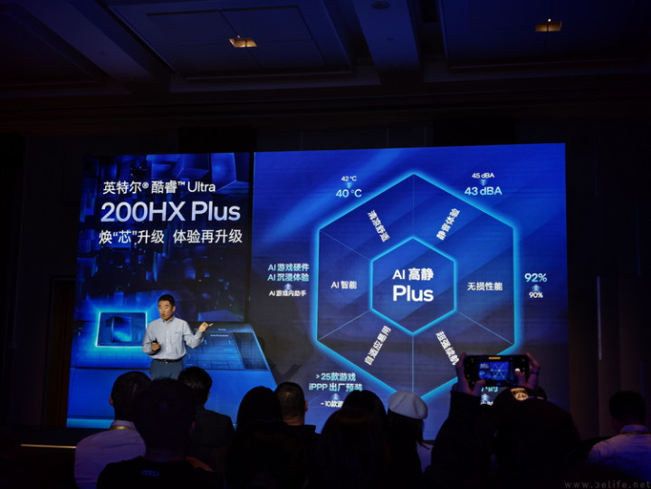 针对这一景象,英特尔在2025年夏日端出了名为“AI高静游戏本”的科罚决策。它的中枢成分,是能效大幅越过、峰值功耗大幅着落的Arrowlake处理器架构,再加上与札记本电脑厂商在散炎风说念、电源治理策略、AI游戏援救功能等方面的合作。彼时的AI高静游戏本,就得胜冲破了咱们关于曩昔几年“高性能札记本”的固有印象,让游戏本也不错领有悠扬体态与超长续航。