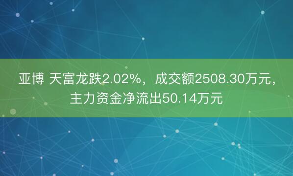 亚博 天富龙跌2.02%,成交额2508.30万元,主力资金净流出50.14万元