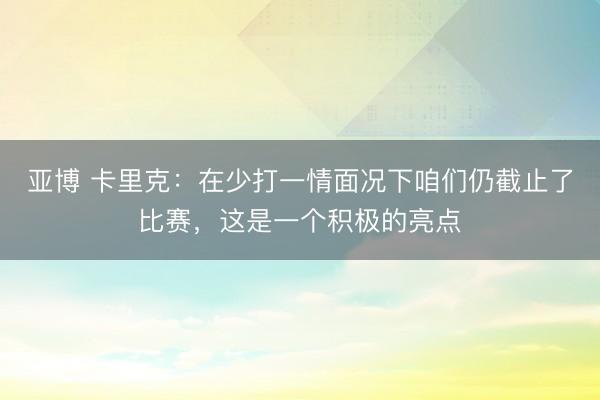 亚博 卡里克:在少打一情面况下咱们仍截止了比赛,这是一个积极的亮点