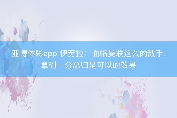 亚博体彩app 伊劳拉:面临曼联这么的敌手,拿到一分总归是可以的效果