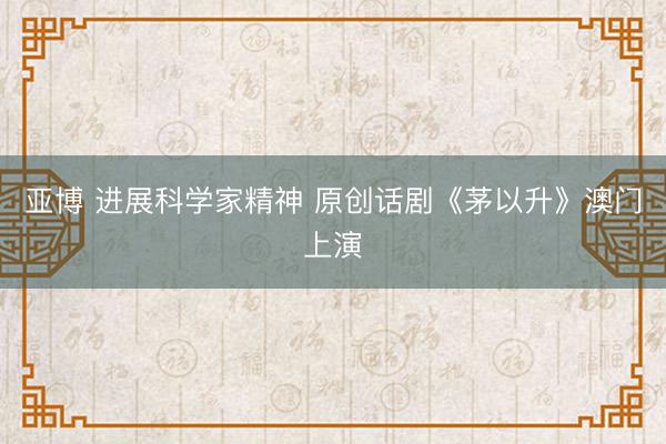 亚博 进展科学家精神 原创话剧《茅以升》澳门上演