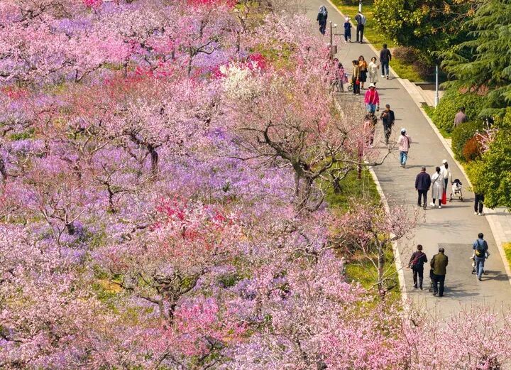 3月28日,旅客在江苏淮安桃花坞公园赏花游玩。新华社发(贺敬华 摄)
