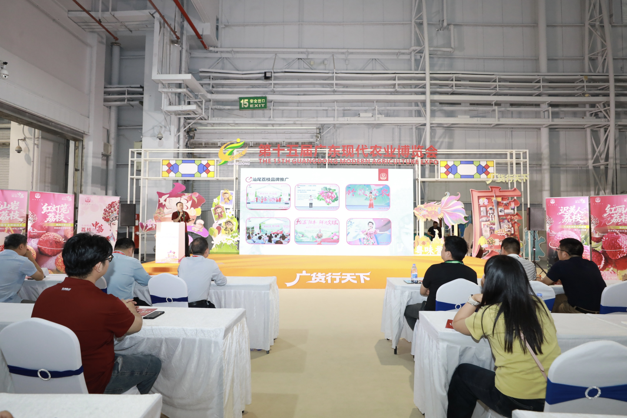 汕尾市荔枝龙眼产业协会会长、汕尾市中荔当代农业科技有限公司总司理连国荣上台推介。