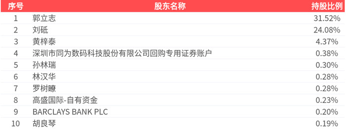 公司鼓励户数为2.10万户,前十大鼓励握股数目为1.36亿股,占总股本比例为61.83%,前十大鼓励握股情况如下:
