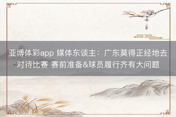 亚博体彩app 媒体东谈主:广东莫得正经地去对待比赛 赛前准备&球员履行齐有大问题