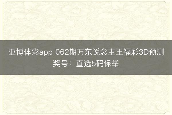 亚博体彩app 062期万东说念主王福彩3D预测奖号:直选5码保举