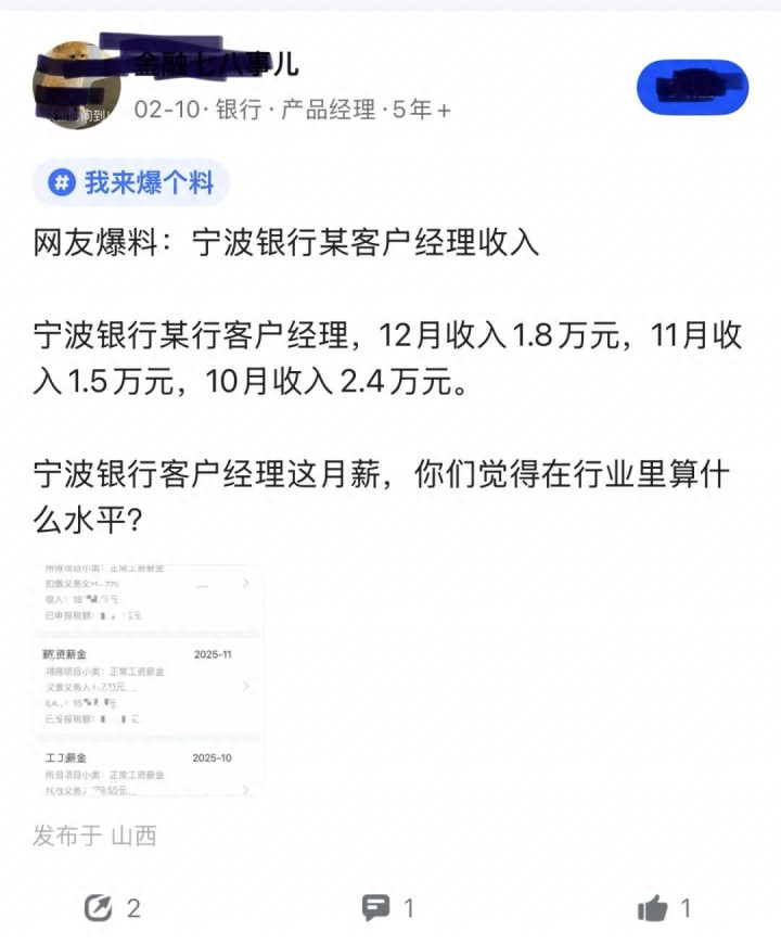 当“宁波银行某客户司理月入过万”的截图在任场社区流传时,围不雅者时常堕入两种极点的误读:要么将其视为金融圈“镀金时期”的缩影,要么简便地归结为“运谈好”的个体风景。据网友爆料,该行某客户司理在10月至12月的收入区分为2.4万元、1.5万元和1.8万元。