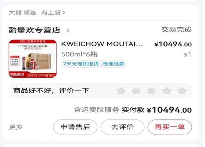据了解,有奢靡者在该直播间购买的两箱53度飞天茅台,经国度食物性量西宾检测中心对其中四瓶白酒出具的法定随便阐述明确清醒:“经随便,本酒样不是贵州茅台酒。”。茅台官方也判定其中一箱为“一眼假”。拜谒发现,涉事往还存在收款、发货、开票三流辞别问题,收款方为四川微鲸安,开票主体却是北京惠好意思诚业,包袱主体难以厘清。因涉案金额未达刑事立案风光而报案无果,奢靡者向短视频平台客服主意“假一赔四”仅被回话开瓶酒“退一赔一”,剩余8瓶未开封的酒寄回平台复检,不然不予处理。