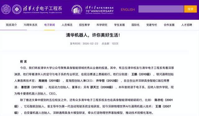 清华大学官网曾发文列举七位清华毕业的具身智能从业者,其中有五位来自清华电子系,与王兴同校同系,而且填塞被他投中了。