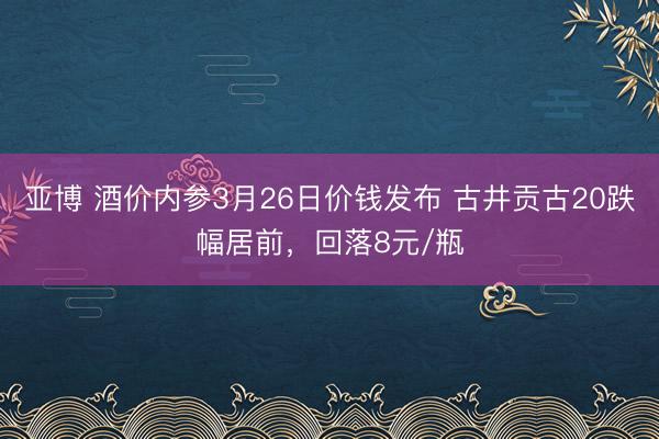 亚博 酒价内参3月26日价钱发布 古井贡古20跌幅居前,回落8元/瓶