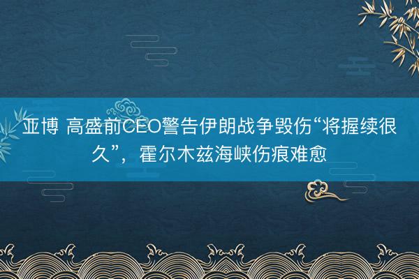 亚博 高盛前CEO警告伊朗战争毁伤“将握续很久”,霍尔木兹海峡伤痕难愈