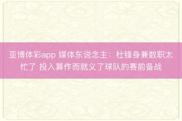 亚博体彩app 媒体东说念主:杜锋身兼数职太忙了 投入算作而就义了球队的赛前备战